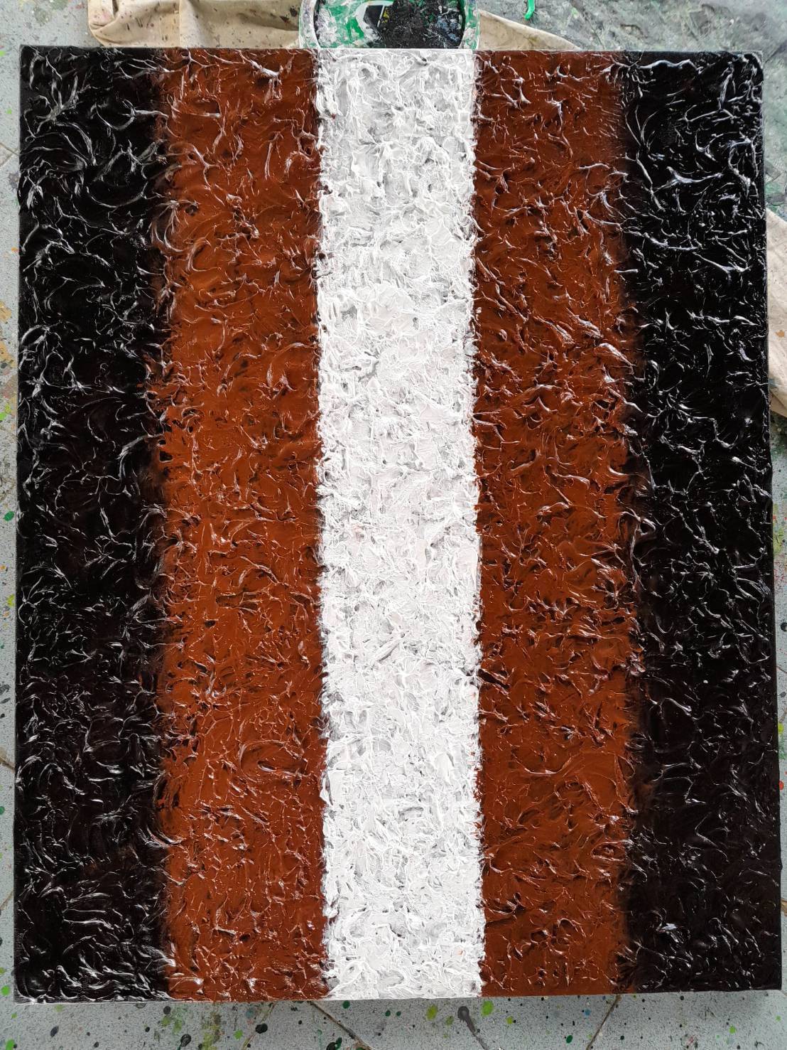 An abstract composition that intricately weaves together shades of black, brown, and white