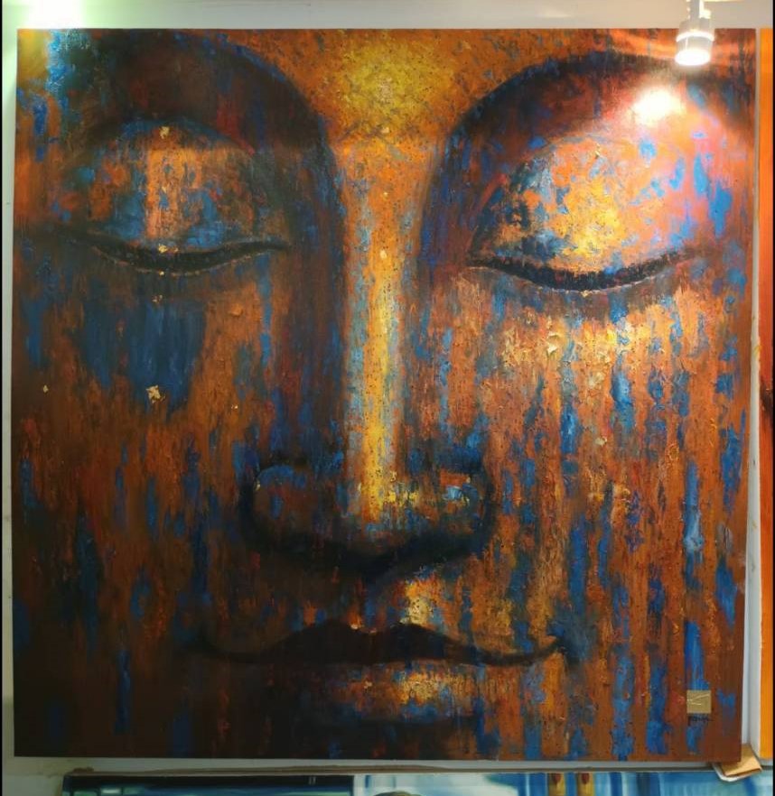 The warm, earthy browns combined with gentle blue highlights create a harmonious composition that reflects wisdom, calm, and spiritual depth.