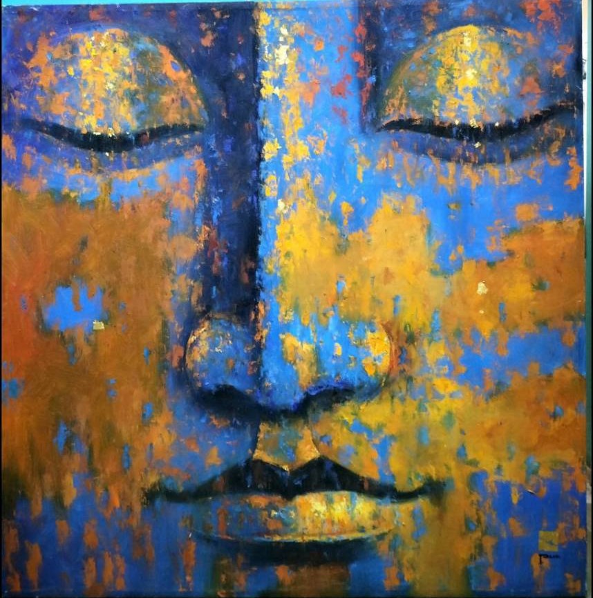 Blending serene blue tones with rich gold accents to symbolize wisdom, enlightenment, and divine energy.