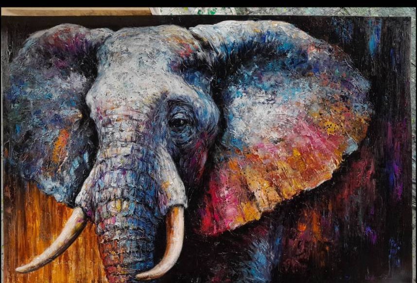 This poignant painting portrays the wise and gentle spirit of an old elephant, showcasing its wrinkled skin and soulful eyes.